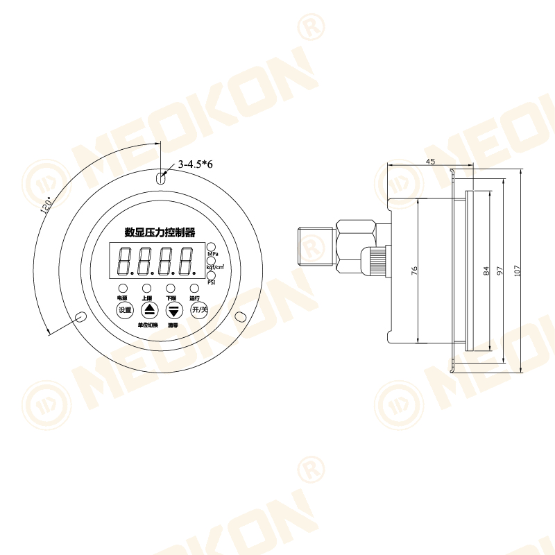主要特點:75mm軸向安裝 304不銹鋼表殼 304不銹鋼接頭 防水對插出線MD-S系列數(shù)顯壓力控制器 | ||